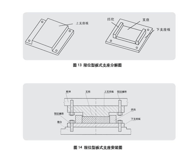 3.1限位型板式橡膠支座性能特點限位型板式橡膠支座,由上支座板、檔坎和下支座板構(gòu)成。其功能如下:a.能傳遞水平力:將橋梁上部的水平力通過上支座板檔坎和下支座板傳遞到橋梁墩臺。b.防止橋梁橫向或總想的滑移或落梁:根據(jù)設計要求或板式支座允許的位移量,它可以將橋梁橫向、縱向的位移量限制在某一范圍內(nèi),或者將橋梁某一方向的位移量固定為零。限位型支座,既具有普通板式支座和四氟板支座的功能,又對其在位移、水平力等等特殊要求的補充利用。