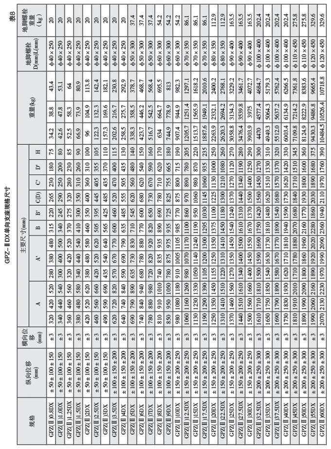 3.GPZ(II)系列盆式橡膠支座結(jié)構(gòu)形式及規(guī)格系列: 雙向(多向)活動支座和單向活動支座由上座板(包括頂板和不銹鋼滑板)、聚四氟乙烯滑板、中間鋼 板、密封圈、橡膠板、底盆、地細燦栓和防塵罩等組成,單項活動支座沿活動方向還設(shè)有導(dǎo)向擋塊。